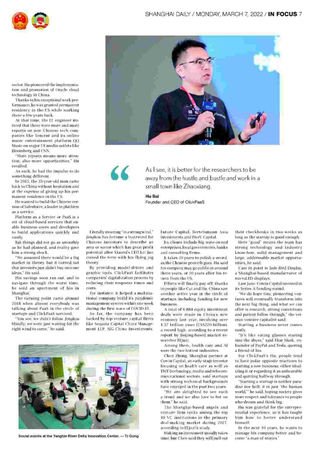 《上海日报》专访CGPAY钱包创始人、、、、CEO胡柏,,,探究其创业背后的故事!!